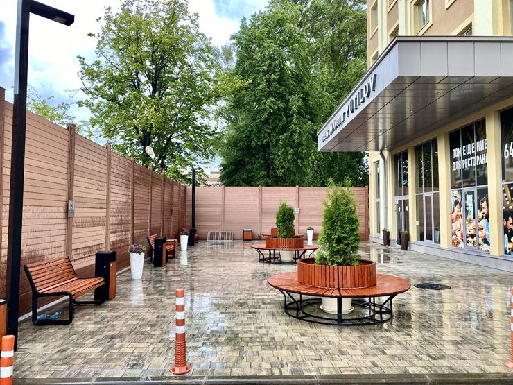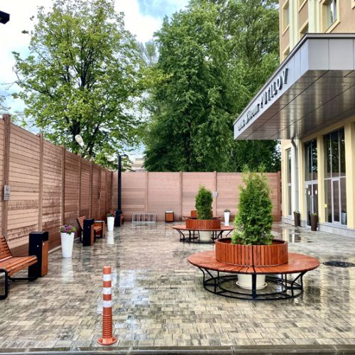 Апартаменты размещены в современном комплексе комфорт-класса. На первом этаже работает ресепшн. На внутридворовой территории оборудованы места для отдыха.